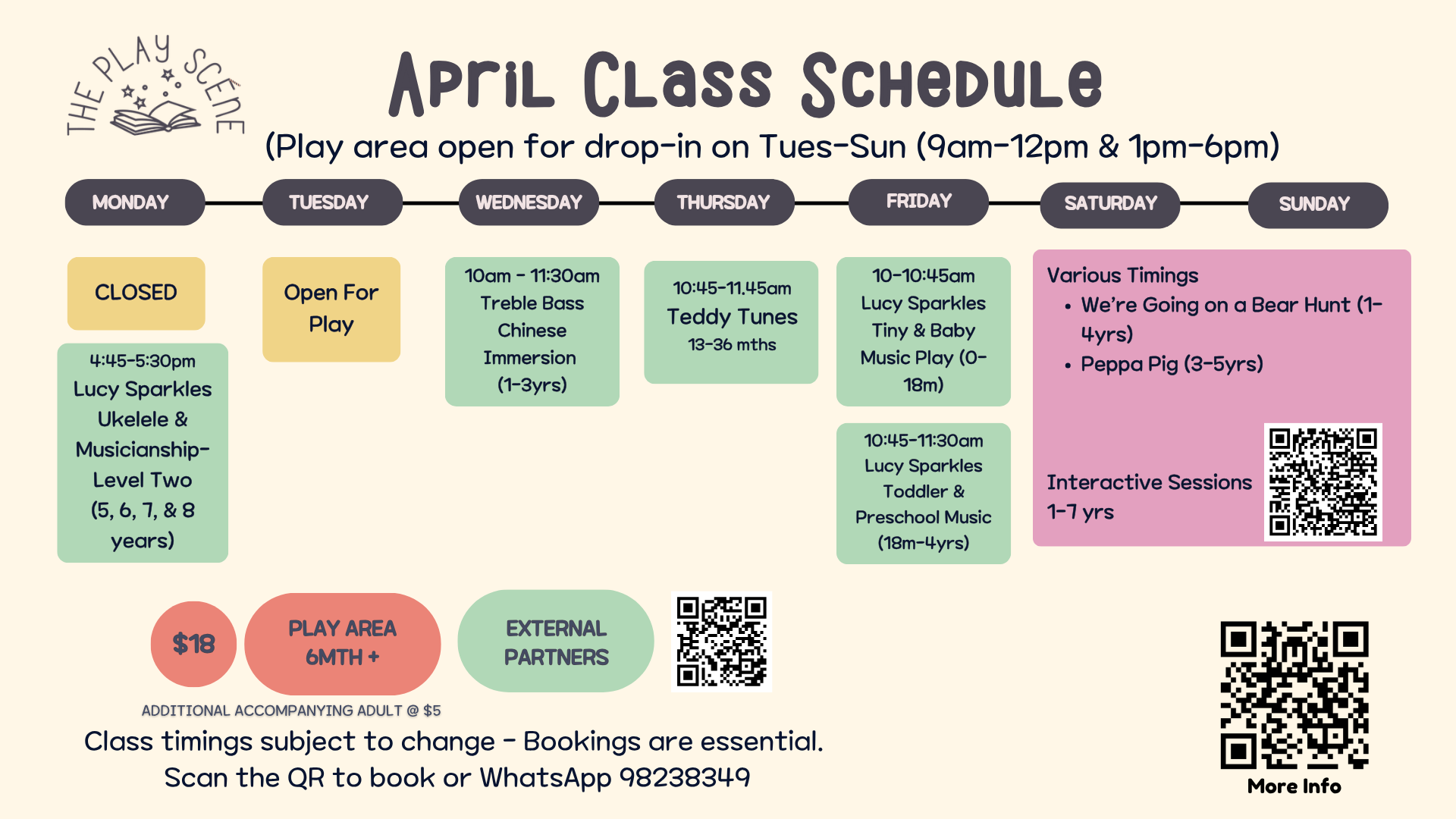 Discover Mandarin through Stories, Rhythm, Action, and Sensory Play! A dynamic Chinese immersion program for little learners (1-3 years), where carefully curated storybooks come alive through music, movement, sensory play, and hands-on crafts! Class Details: Wednesdays 10:00-11:30am Suitable for ages 1-3yrs This is an adult-accompanied class Socks mandatory (grip socks recommended) Session Length: 90 min…